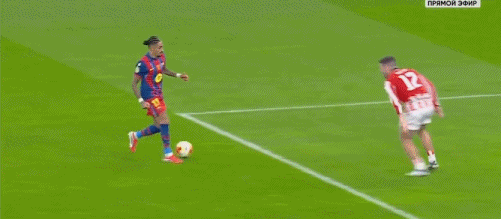 整个上半场比赛,状态不佳的巴斯克雄狮便直接被巴萨打爆了;前20分钟乌奈-西蒙便已经做出了2次扑救。第22分钟,巴尔德吉右侧横传,费尔明似传似射,费兰-托雷斯接球弹射破门,1:0!费兰-托雷斯这赛季已经打进14球,是队内的第一射手。第30分钟,佩德里左侧肋部潇洒摆脱直塞,拉菲尼亚心领神会前插传中,中路无人盯防的费尔明轻松劲射再下一城,2:0!