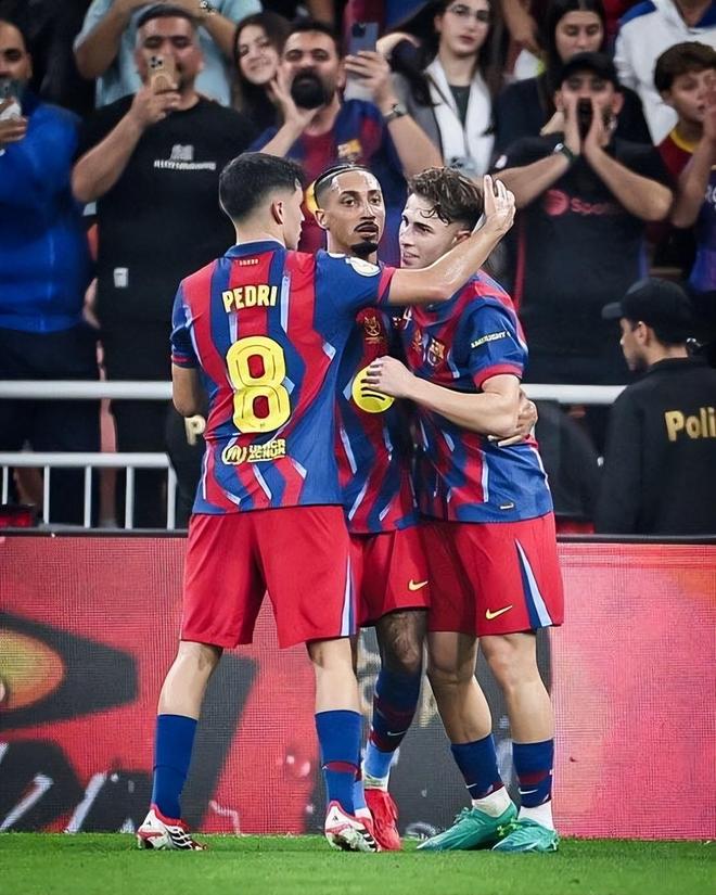 虽然在11月份的欧冠输给切尔西,但之后的巴萨便开启了连战连胜模式,连续的取胜让弗里克的球队始终排在西甲第一,这让状态回暖的皇马只能一直屈居西甲第二。在上轮赢下加泰罗尼亚德比后,巴萨在本周中迎来了与毕尔巴鄂竞技的西班牙超级杯对决;费尔明1射2传,拉菲尼亚梅开二度,巴尔德吉和费兰也有进球入账,巴萨5球横扫毕尔巴鄂竞技,强势晋级超级杯决赛。